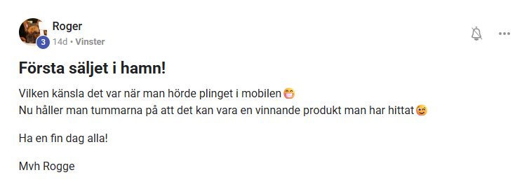 Det tog Roger mindre än 5 dagar i programmet att få sitt första sälj!